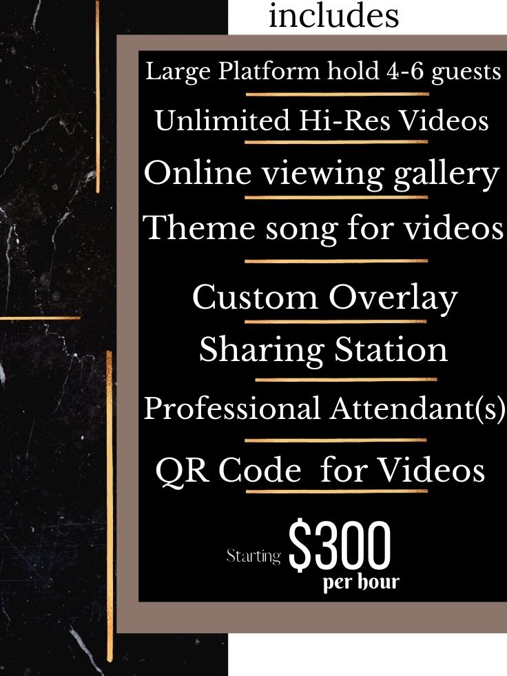 *all selfie booths are equipped with built-in, adjustable camera mounts for you & your guests to capture their own videos and photos.