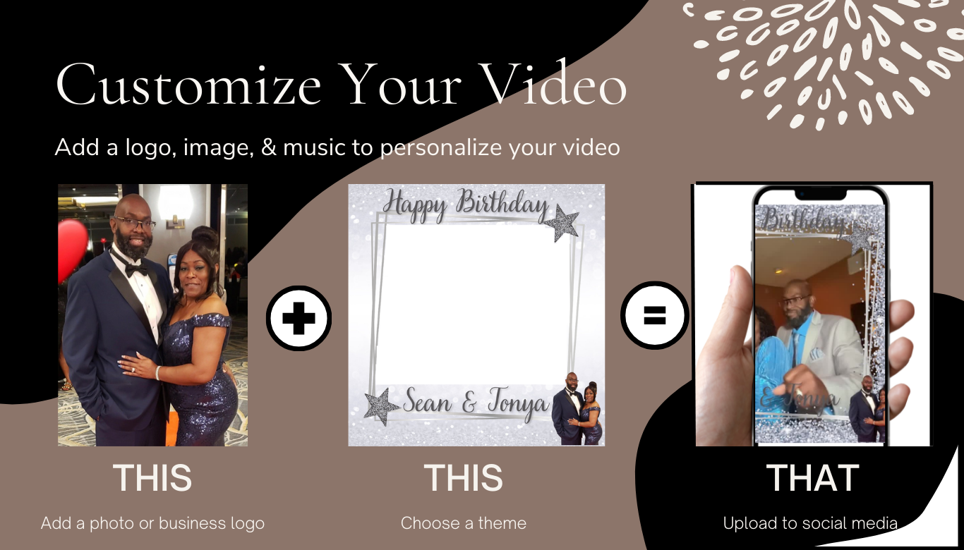 Video templates are created through a video editing software prior to each event. We then customize your video by adding an overlay.